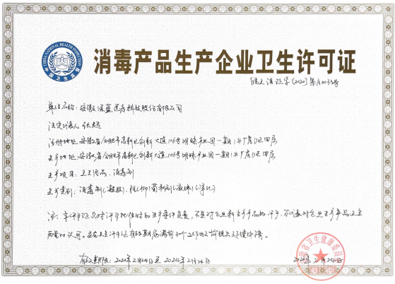 2020年1月份,全國新型冠狀病毒感染的肺炎人數(shù)呈快速上升趨勢,形勢嚴峻,疫情防控已成為舉國上下重中之重的第一要務。深藍醫(yī)療雖然不是疫情應急防控產品定點生產企業(yè),但深知企業(yè)的責任所在,時刻關注疫情發(fā)展動態(tài)。應政府通知要求,為有效支撐新型冠狀病毒感染肺炎疫情防護工作,促進疫情防護重點物資生產及產業(yè)鏈企業(yè)盡快形成有效產能,深藍醫(yī)療迅速組織員工進行復產復工助力疫情防控工作,企業(yè)通過合肥市衛(wèi)健委應急審批通道,申請辦理消毒產品生產企業(yè)衛(wèi)生許可證。2月18日,合肥市衛(wèi)生監(jiān)督所一行審核人員在張超董事長的陪同下,對生產現(xiàn)場進行審核驗收。