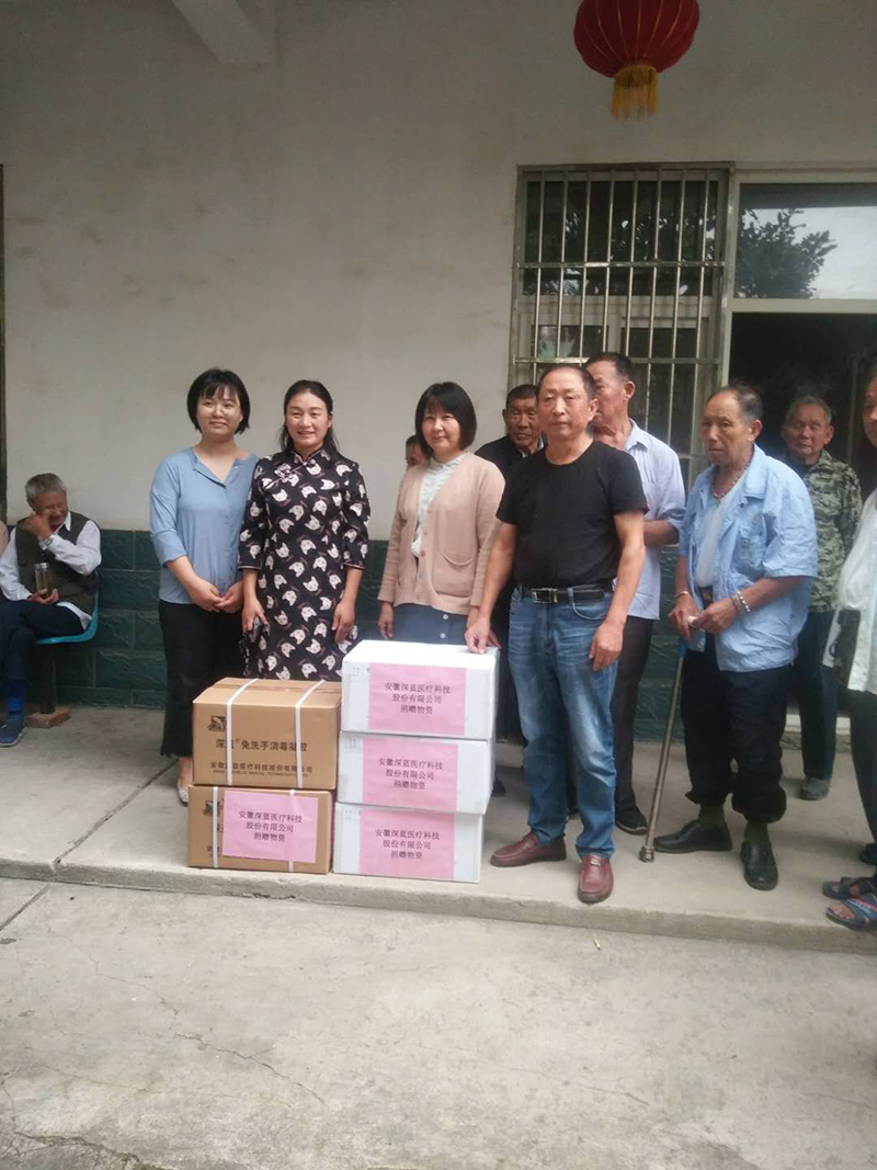 2020年9月,安徽深藍醫(yī)療科技股份有限公司公益行來到嚴店鄉(xiāng)特困供養(yǎng)中心、安徽省紅十字博愛學校、黃山金川中學及太湖沙河中學,并捐贈價值4萬元的免洗手消毒凝膠用于疫情防控。