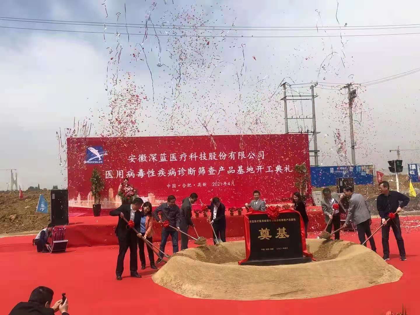 鑼鼓喧天,禮炮齊鳴,培土禮成!4月18日上午,深藍醫(yī)療病毒性疾病診斷篩查類產(chǎn)品基地項目在合肥市高新區(qū)舉行了隆重的開工奠基儀式,合肥高新區(qū)黨工委委員、管委會副主任劉登銀、合肥高新區(qū)投資促進局局長徐斌、合肥高新區(qū)建設發(fā)展局局長劉群及各有關部門的負責同志出席奠基儀式。