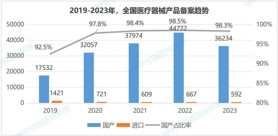 2023年,全國醫(yī)療器械備案產(chǎn)品國產(chǎn)占比率達到98.3%。