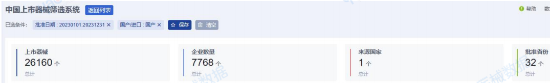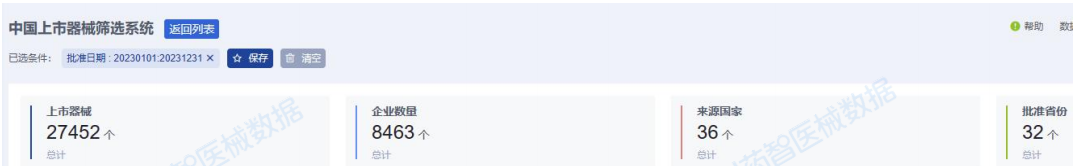 據(jù)藥智醫(yī)械數(shù)據(jù)-中國上市器械篩選系統(tǒng)統(tǒng)計分析,2023年,NMPA共批準注冊了27452項醫(yī)療器械。這些批準涉及8463家注冊人企業(yè),覆蓋了全國32個省份,并涉及來自36個不同國家的醫(yī)療器械。