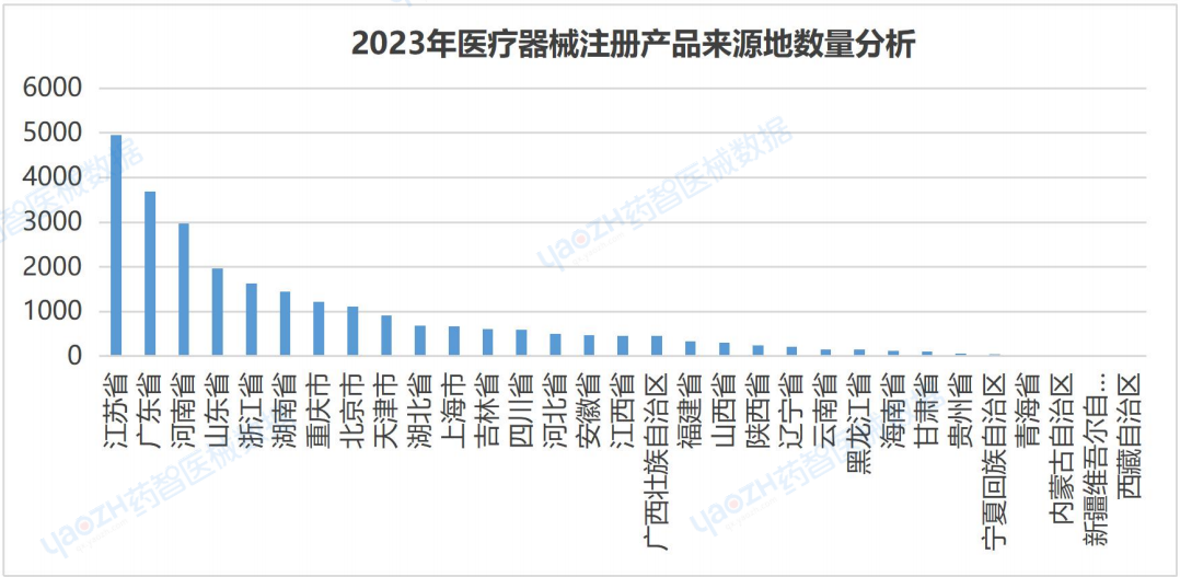 2.2 2023年國產(chǎn)醫(yī)療器械注冊產(chǎn)品來源地數(shù)量分析