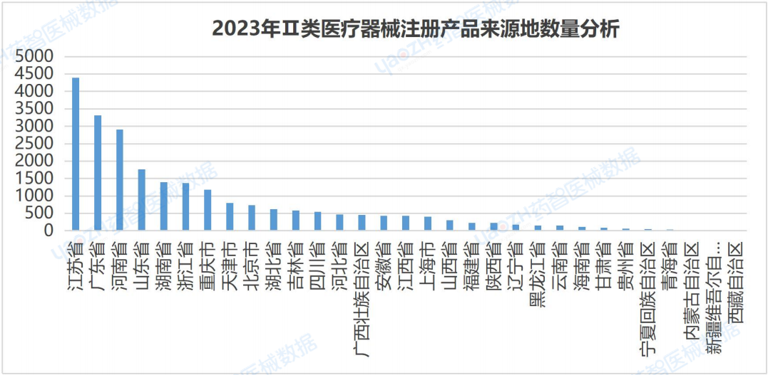 2.3 2023年全國Ⅱ類醫(yī)療器械注冊產(chǎn)品來源地數(shù)量分析