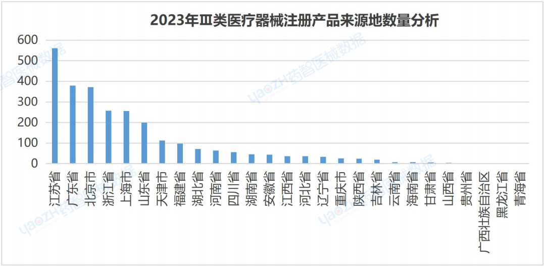 2.4 2023年全國Ⅲ類醫(yī)療器械注冊產(chǎn)品來源地數(shù)量分析