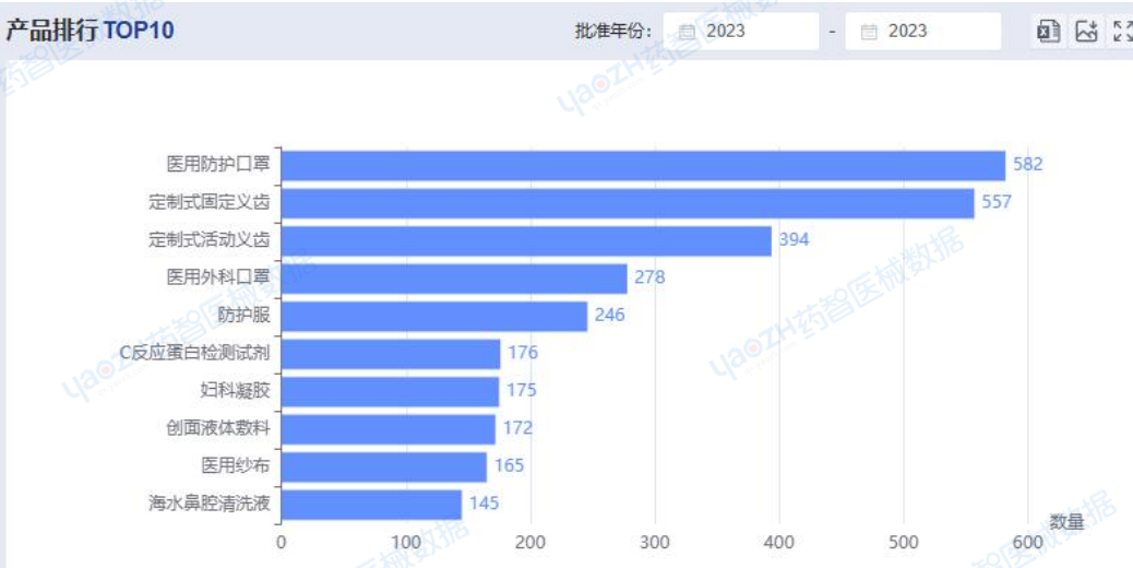 從產(chǎn)品品類來看,截至目前,2023年全國注冊醫(yī)療器械產(chǎn)品中醫(yī)用防護口罩注冊數(shù)量排名第一,有582項。