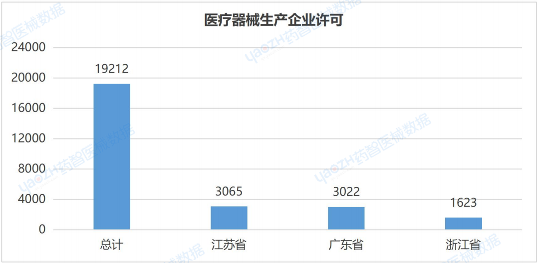在境內(nèi)從事第二類、第三類醫(yī)療器械生產(chǎn)企業(yè),應(yīng)當向所在地省、自治區(qū)、直轄市藥品監(jiān)督管理部門申請生產(chǎn)許可。截至2023年,注冊醫(yī)療器械生產(chǎn)許可企業(yè)數(shù)量排名前三的省份依次是江蘇省、廣東省、浙江省。