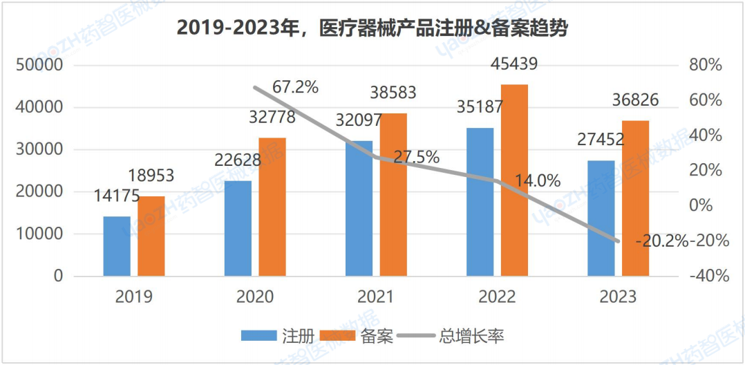 1.1 2019年-2023年醫(yī)療器械產(chǎn)品注冊&備案趨勢