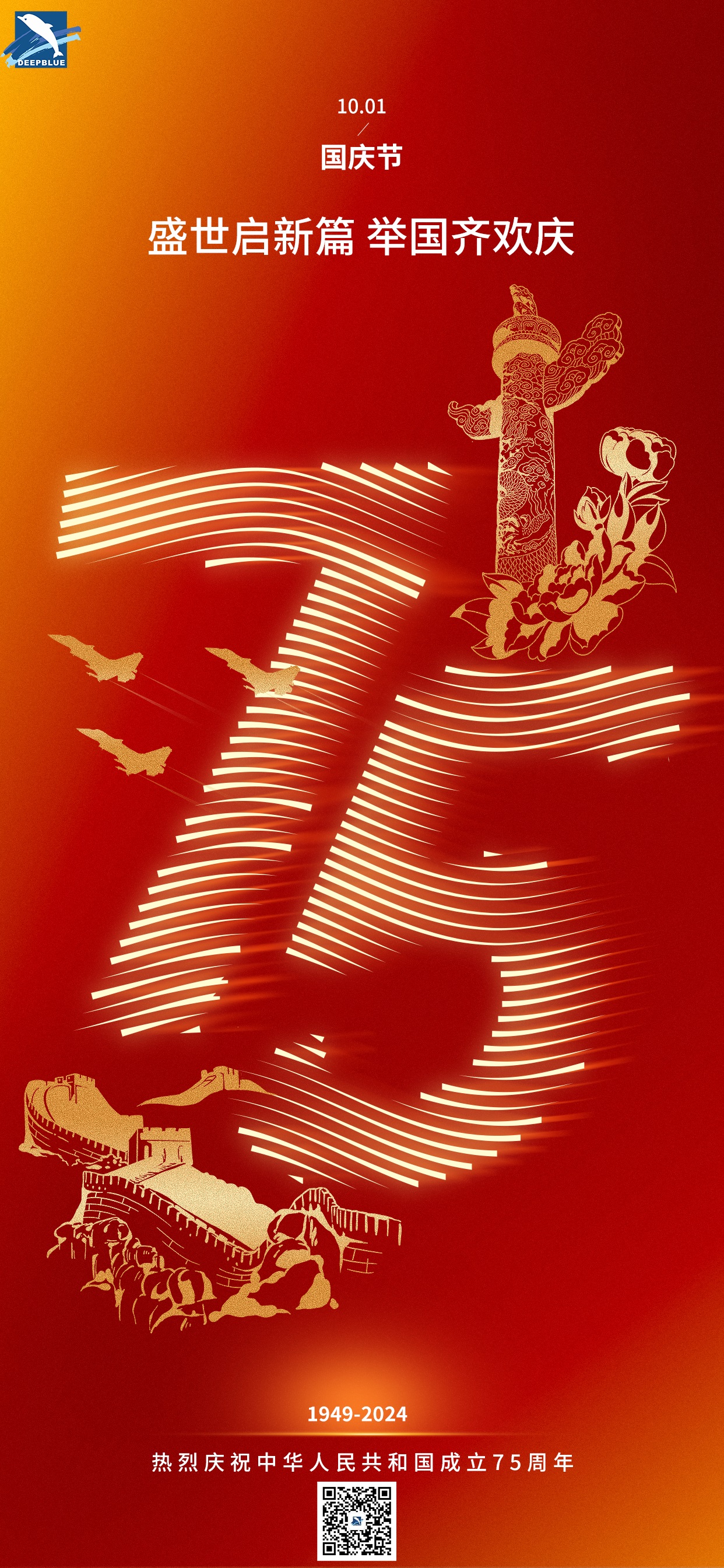 在這金風(fēng)送爽的十月,我們迎來(lái)了偉大祖國(guó)的生日——國(guó)慶節(jié)。在這個(gè)普天同慶的時(shí)刻,深藍(lán)醫(yī)療向祖國(guó)母親致以最崇高的敬意,向每一位為健康事業(yè)奮斗的伙伴們送上最誠(chéng)摯的祝福。