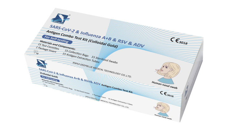 深藍(lán)醫(yī)療自主研發(fā)的呼吸道五合一自測試劑盒用于人鼻拭子標(biāo)本中新冠、甲型流感、乙型流感、呼吸道合胞和腺病毒抗原的定性檢測,操作簡單,結(jié)果準(zhǔn)確,方便家庭自我檢測使用。
