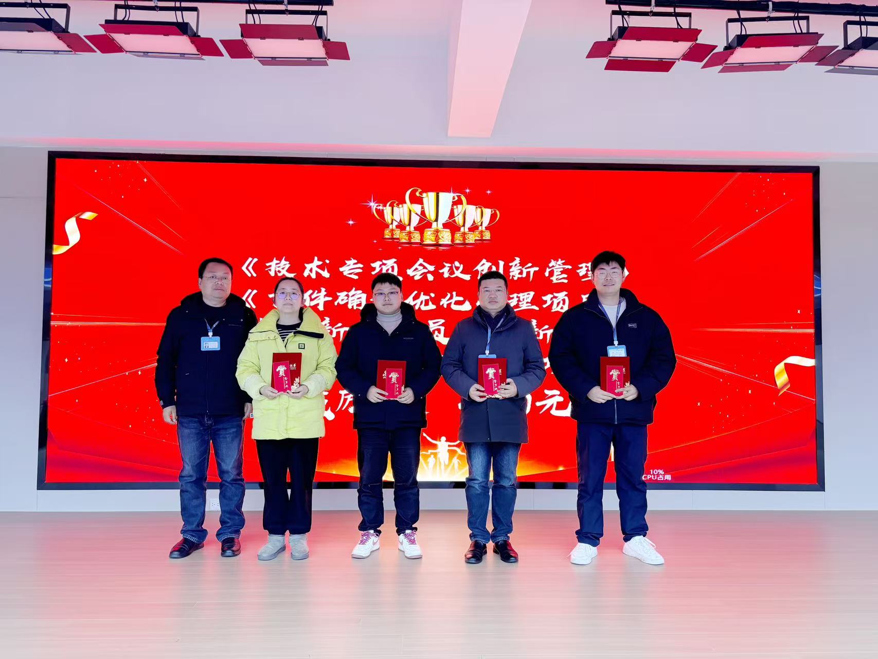 創(chuàng)新小組副組長靳如森為《技術(shù)專項會議創(chuàng)新管理》、《首件確認優(yōu)化管理項目》、《老帶新業(yè)務(wù)員培養(yǎng)新模式》、《生產(chǎn)標(biāo)識更新管理項目》獲獎代表頒獎。這些項目聚焦會議效率、質(zhì)量源頭控制、人才培養(yǎng)機制及現(xiàn)場管理可視化,以流程微創(chuàng)新推動運營效率大提升。
